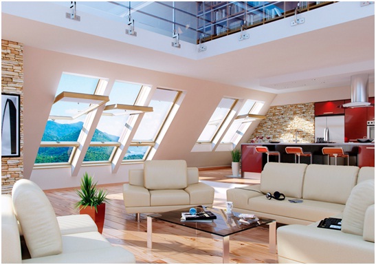 Sunt amplasate in doua canaturi suprapuse care le transforma din ferestre superinalte in ferestre uriase. Canatul superior este, de fapt, fereastra superinalta (a carei pivotare se face deasupra liniei mediane) iar canatul inferior este o parte fixa. Sunt singurele ferestre de mansarda de pe piata care raspund cerintelor normei DIN 5034-1 (referitoare la luminatul incaperilor) in conditiile montarii pe un acoperis cu panta cuprinsa intre 30Ë- 43Ë. Fereastra FDY-V inlocuieste necesitatea combinarii pe verticala cu acelasi rezultat: o suprafata vitrata mai mare. Ãn cazul combinatiilor standard distanta intre suprafetele vitrate este de 30 cm, in timp ce in cazul acestor ferestre este doar de 15cm.