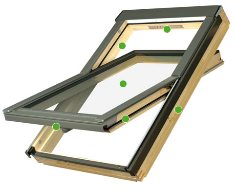 Datorita articultiei situate in partea inferioara, cerceveaua indeplineste si rol de protectie impotriva vantului atunci cand geamul este deschis, iar pe timp de iarna nu este impiedicata deschiderea ferestrei, datorita depunerilor de zapada. Fereastra FSP satisface cerintele standardului EN 12101-2.2005 si are certificat CE.